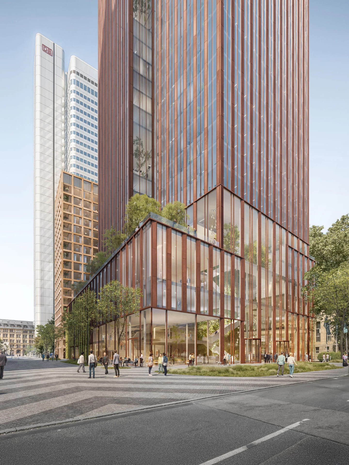Auf dem Grundstück eines ehemals rein privaten Bürogebäudes entsteht ein vielfältig genutztes Gebäudeensemble, bestehend aus zwei Hochhäusern unterschiedlicher Höhe, die durch ein Sockelgebäude miteinander verbunden werden. Das Gebäudeensemble beherbergt Büroflächen, Wohnungen sowie Flächen für kulturelle Nutzungen, Hotel, Einzelhandel und Gastronomie.